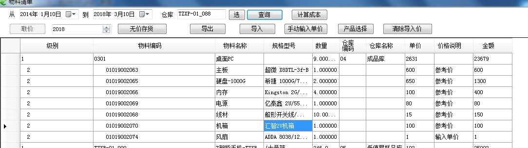從用友的提取產(chǎn)品BOM,逐級(jí)展開到*末級(jí)材料,然后從價(jià)格庫中提取單價(jià),卷積運(yùn)算到每個(gè)層次的成本,按順序由低層到高層完成所有成本BOM層次的標(biāo)準(zhǔn)成本計(jì)算。